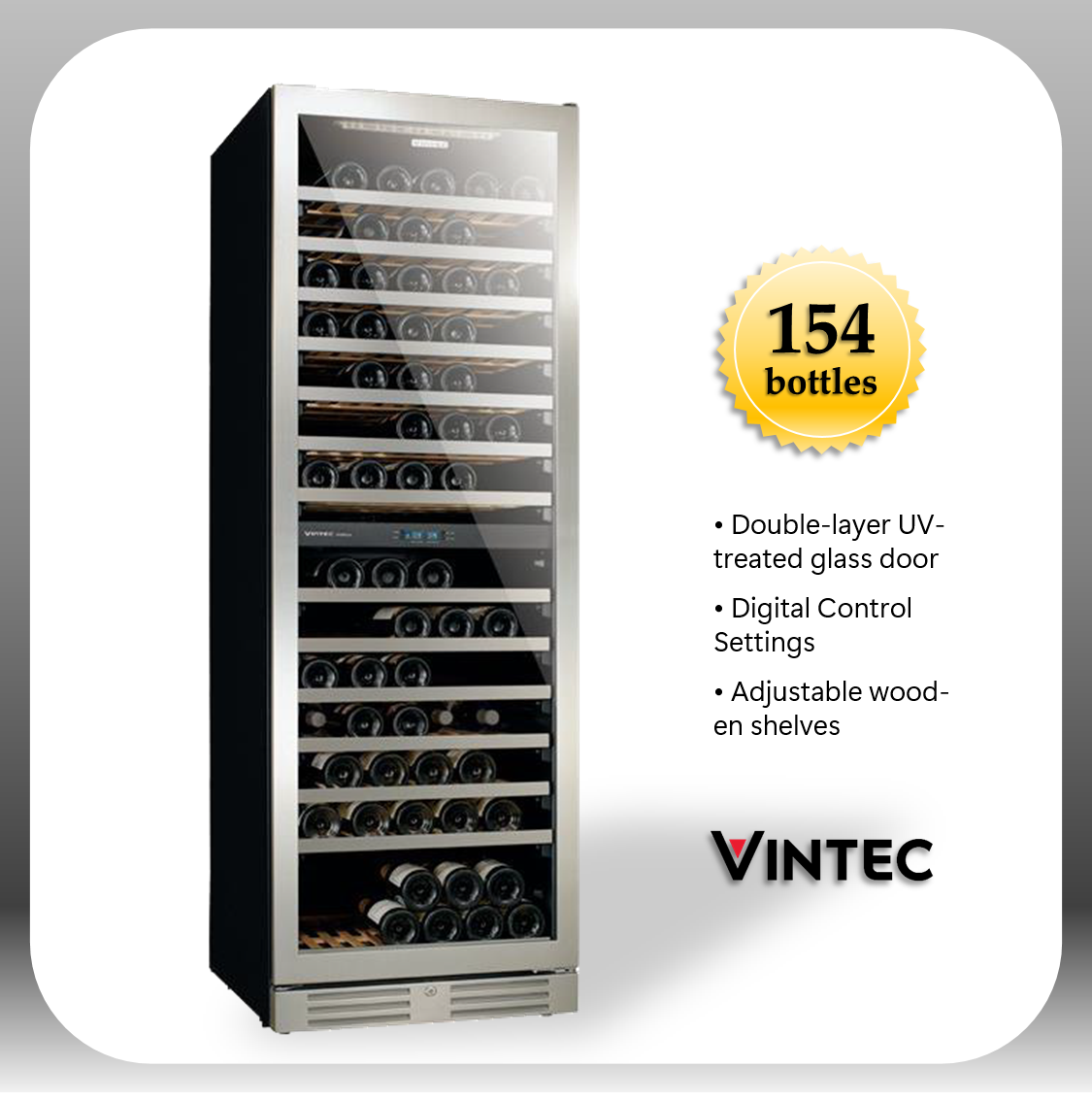 No. of wooden shelves: 12 with stainless steel front